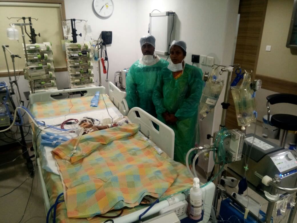5-month-old baby Thejas caught a cold. His parents thought it was the effect of the weather or just the flu. Unfortunately for Thejesh, it turned out to be nothing like the flu. He is now in the ICU fighting acute respiratory distress syndrome, hooked to machines that are helping him breathe.It was not a cold, it was pneumoniaNandakumar (Thejas’s father) is a driver, while Aruna cares for the house. Thejas is their firstborn son. His birth made the couple extremely happy, especially after years of grief. Just before Nandakumar’s wedding a few years ago, his brother met with an accident that took his life. The incident put off the wedding plans, and treatment to save his brother bled the family dry. After all this time, Nandakumar could move on from the loss, pay off all debt and reunite with his fiancé. They believed the worst was behind them until Thejas began wheezing.“We thought it was just a cold, and even the doctor prescribed medicines for an infection. Suddenly, he was