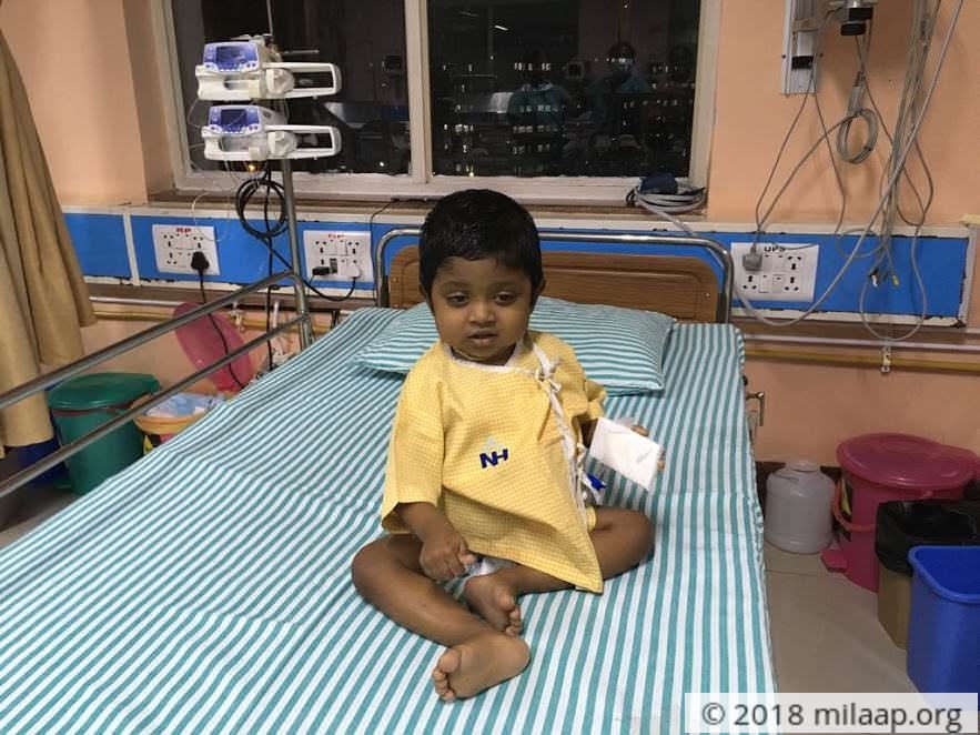 Rishikesh is just 2 years old yet he has experienced more pain than many adults. He was diagnosed with liver disease soon after birth and has lived with pain and discomfort since then. His prolonged jaundice has only made his condition much worse. His skin and eyes turned yellowish and had prolonged jaundiceUma, Raj and their daughter Raksha were thrilled when Rishikesh finally arrived in their lives. But within two months their happiness was taken away. Rishikesh had a high fever and his skin and eyes turned yellowish. He was taken to hospital and doctors said it was jaundice. They were hopeful that he would get better, but the jaundice simply did not heal. The doctors diagnosed him with Biliary Atresia, a disease in which one or more bile ducts are blocked or absent. His liver was eating itself up.When he was just three months, he had a surgery that inserted a duct inside his body. Unfortunately, it was not successful, his condition deteriorated and he developed infections. He neede