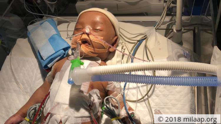 Ahil is just 45 days old and his heart defect was diagnosed late. His parents took him to a hospital in their town Gonda as well as in the nearest city, Lucknow. Ahil has spent over 40 days hospitalised, being treated for a cold and lung congestion. His condition worsened quickly and he was rushed to Delhi for better medical care. He needs a surgery and treatment to make it.Ahil's parents keep a constant vigil over Ahil and are waiting for him to get betterAhil has not even started to recognise his parents before being pushed into a sea of new facesAhil's parents could experience the joy of having a new child for only his first 15 days. After that, he developed a very bad cold. Catching a cold in winter is nothing new – newborn babies are especially prone to falling sick. But soon, despite furiously pulling in air – he seemed unable to breathe his parents saw that something was wrong. His parents took him to the best child specialist in Gonda. The doctor admitted him immediately