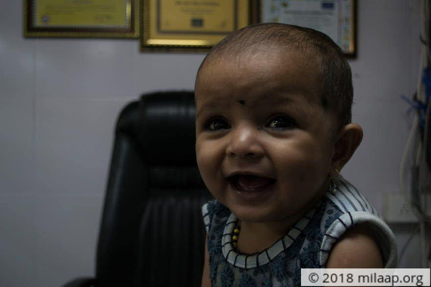 “Whenever I look at my baby, my eyes fill up. I don’t know why this has happened to my her. I just feel so helpless and hurt about the fact that I can’t do anything but be by her side.“ – Manisha, Aditi’s motherIn addition to this, 9-month-old Aditi’s mother also fears losing her and has done everything in her power to save her. Aditi has a severe congenital heart disease and a hole in her heart. She needs an immediate heart surgery but her parents have no means to save her.Manisha, Aditi and Mukesh (Aditi's father)Aditi's smile fills her mother up with hopesPlayful and always smiling at anyone who holds her, Aditi is so cheerful that no one can guess at how ill she really is. Her radiant smile is the one thing her mother can really hold on to even in the darkest moments.“When you look at her, it’s hard to think that her condition is so serious. She just wants to play and will do so with any one. She doesn’t cry and is constantly smiling. It’s hard to think that
