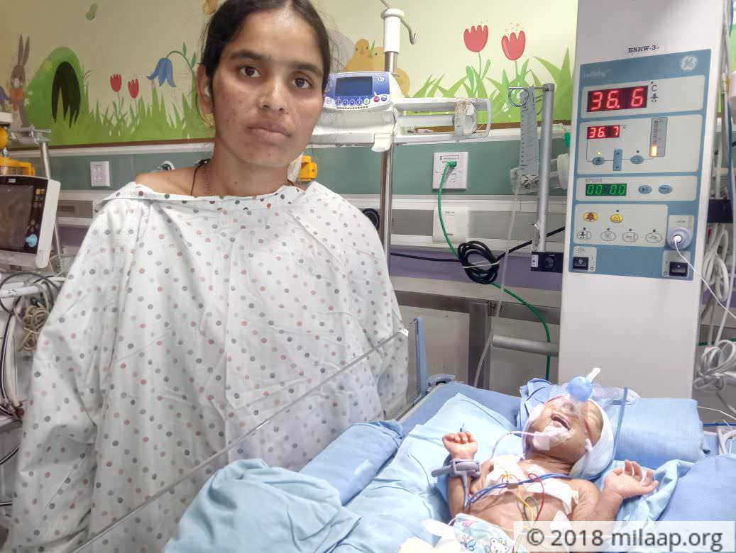 “A lorry hit them – Devyani was unconscious, her daughter had minor injuries but her husband was gone by the time I got there. His head smashed. His hands and ribs twisted and broken.”5-months-pregnant Devyani came out of this terrible accident with only a leg fracture and minimal injury to her baby. When her son was born last month, Devyani came out of her shell of grief to nurse and play with him. Unfortunately, his lungs are not fully formed and he needs critical care to survive. Once again fraught with worry, Devyani is struggling to save him.Devyani is waiting for her baby to get better to go homeDevyani didn't know her husband had died for three monthsDevyani, her husband Devi and her 2-year-old daughter Akshika were going to a wedding on November 26, 2017. It was a Sunday and and the rest of the family was following them. A truck swerved on the road and hit Devi and his bike. He was gone by the time the others reached them.Devyani with her daughter and husbandHer parents