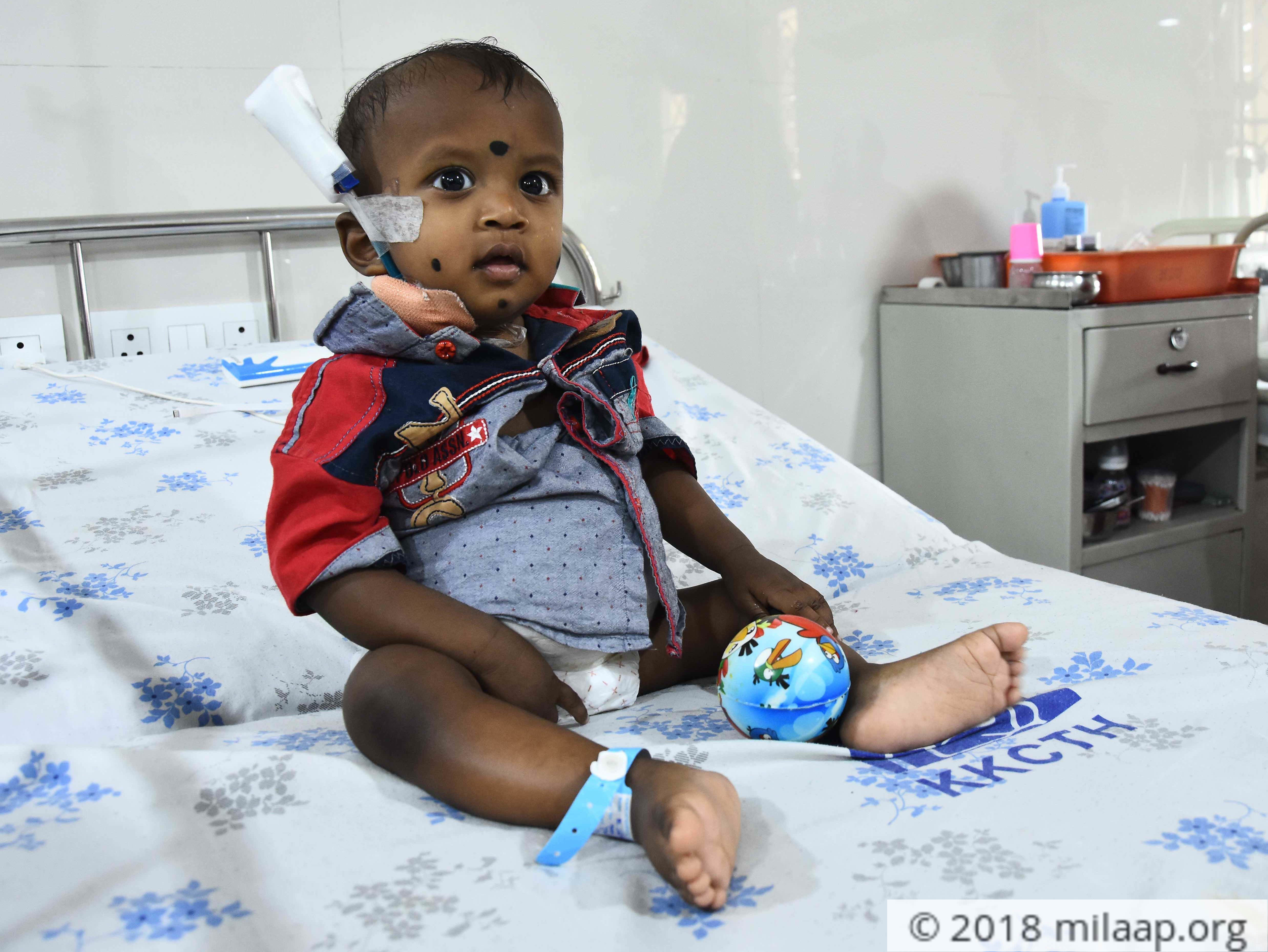 Just 10 days after his first birthday, Baby Sakthi was in the hospital struggling to breathe. In a matter of days, both his kidneys started failing, and he was fighting for his life. Anitha and Rameshraja couldn’t believe that life had taken such a tragic turn for their little one. Sakthi has acute kidney failure and can’t go on any longer without treatment. He needs dialysis for the next 6 months to survive, but Anitha and Rameshraja have no one to turn to for help.Just a few days after his first birthday, his condition rapidly deteriorated“He just turned one last month. It seems like just yesterday we were all happy, living a normal life. Sakthi can’t even talk or walk on his own yet. We were looking forward to watching him reach all those milestones. Now I’m scared that he won’t even make it to his next birthday. His condition is so serious and he’s only a baby. How can his little body take so much pain?”Sakthi with his parents and older sister before his illnessS