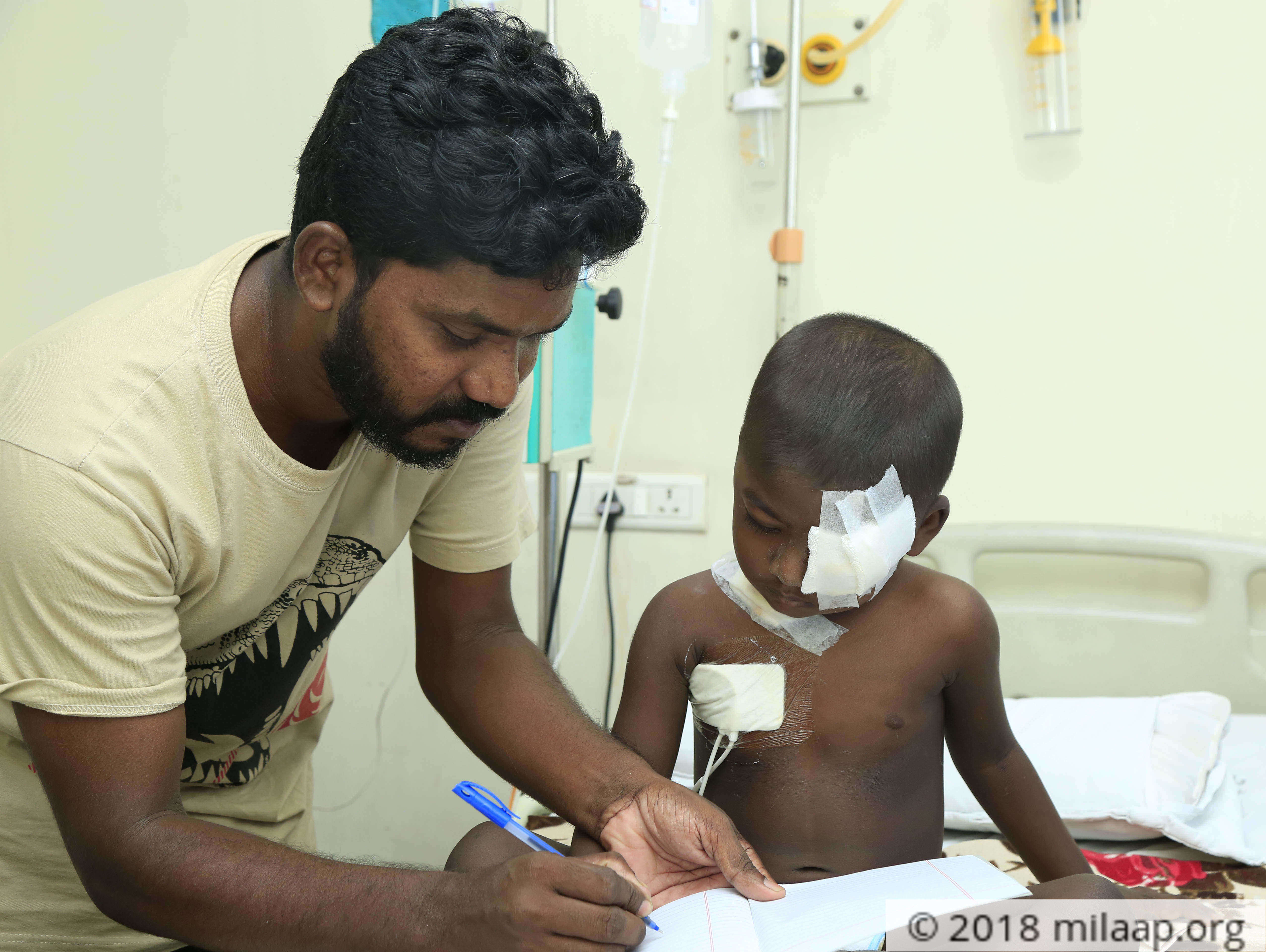 Joshua loved to look at himself in the mirror at least a dozen times in a day. But this was before a rare cancer affected his left eye. He does not know what he looks like any more. His parents, Susan Jacob and Jacob John, have a hard time recognizing him too because of the bandage on his eye that covers almost half his face. He is weak and does not talk much; drastically different from his earlier playful and talkative self. All he does now is cry of pain due to the numerous injections he gets in a day and stare at boardgames with one eye because he is too weak to play with them.When a sharp leg pain turned out to be a dangerous diseaseWhen Joshua complained of leg pain in July last year, his parents told him to sit more because their second child was always on the move. He would spend his time playing and running around the house, and never rest. But they understood that it was something to be taken seriously when he got a fever that persisted for two weeks.“He would be normal in