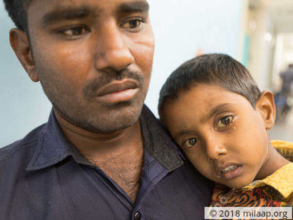 “We couldn’t get our son any medical help since 6 months because we didn’t have a single rupee. Half the days we have to go without food, from where can I afford treatment worth lakhs of rupees?”Anjanna’s 8-year-old son, Sagar started bleeding from his gums about 6 months ago. Slowly other symptoms started appearing, patchy skin and rashes, yellowing of eyes and skin, swelling of the stomach etc. His parents took him to the hospital to find out what was happening to him. The doctors ran a lot of tests and diagnosed him with Chronic Liver Disease. They told him that Sagar would need a transplant to survive.Anjanna just needed more time to arrange money for his son's treatmentWhen Anjanna heard the cost of the treatment, he immediately had to back off. Anjanna’s family has to go hungry half the days, their financial condition wasn’t allowing him to fund his youngest son’s treatment. All he needed was, some time for arranging the money required for the treatment. But sadl