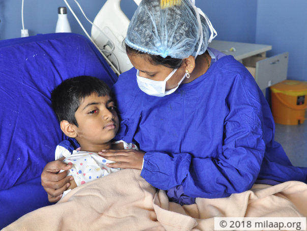 “In the past 15 months he’s been admitted to the hospital 12 times. His disease is so rare and mysterious. He starts bleeding randomly from any part of his body. He keeps losing blood every now and then and his condition gets worse with infections. His transplant should have happened a year ago but we just can’t afford it and if he keeps losing blood, my son will lose his life.” – Asmita, Ayush’s mother6-year-old Ayush has survived with a rare but deadly bone disease for over a year but now, he doesn’t have long before his body gives up. His only hope lies in undergoing an urgent bone marrow transplant. His father, Anil, has been matched as a donor too but, he’s desperately running out of time to save his son’s life.Ayush has been tormented with an extremely rare diseaseAyush’s constant pale skin frightened his mother but to her horror, in late January 2017, he was diagnosed with an extremely rare bone marrow disease called aplastic anemia.“His disease has become