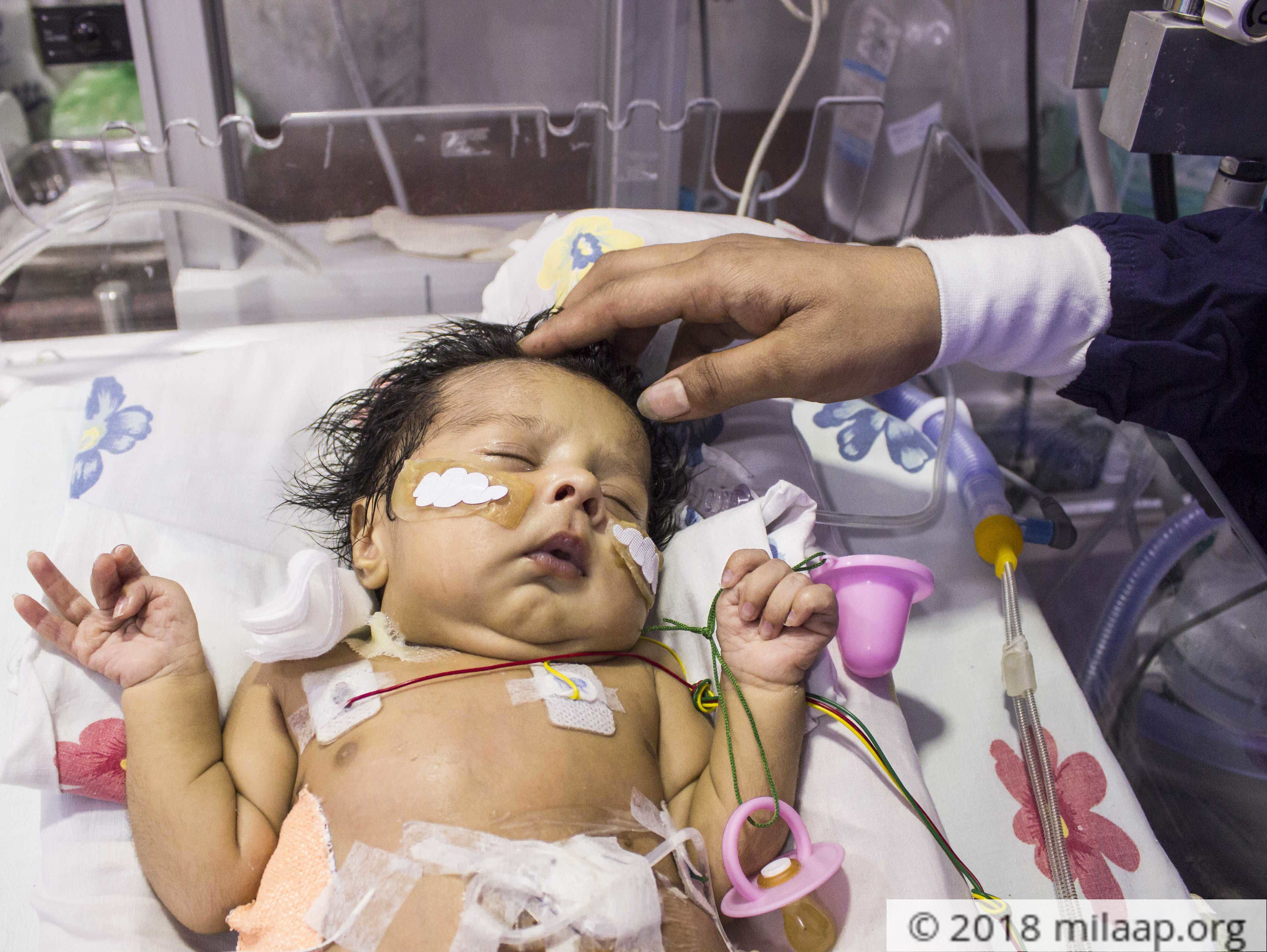 “My baby boy was born with a part of his food pipe missing; what remained was intertwined with his windpipe. His condition was so critical that he had to have an emergency surgery within two days of his birth. We thought that would help him recover, but soon he started getting deadly infections. We have been to hell and back in the past few days; I had to sell the only piece of land I owned for a meagre sum, but even that is useless now. We need a lot of money to save our son but all financial options have closed for me.”-Ombir Singh, father.The baby boy was rushed to Delhi because his disease is so rare for which treatment is not available everywhereOmbir and Sangeeta live in Palwal district of Haryana, where advanced medical facilities do not exist. Their baby boy was born in a government hospital, just like his older siblings. He had to be shifted to Delhi soon after his birth because he was not able to feed or breathe properly.Ombir and Sangeeta were not prepared for the ment