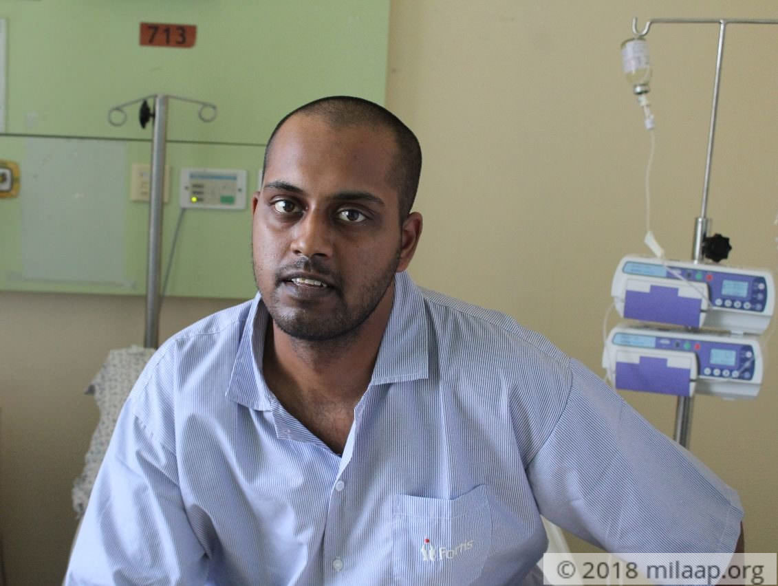 It’s been just 2 years since my 28-year-old son, Suhas started his career. Our happiness knew no bounds when he got a job in a private company. Just when his dreams began materializing, a cruel fate attacked him. Blood cancer has taken over his life and his future is now bleak.My name is Kumaraswamy. My wife Poornima and Suhas, live with me in Mysore. I make a modest income working in a small shop. Yet we never needed additional financial support in all these years, even as I educated my son.My son has grown into a young, responsible young man. Poornima and I just started planning for his marriage. Instead of meeting prospective families, we spend sleepless nights worrying that we might lose our only son forever.We were living our normal lives. He was a very healthy young man and rarely complained of a fever. This time, however, his temperature kept spiking up for weeks. We thought it was a viral fever but the local doctors sensed something unusual referred us to a big hospital. The